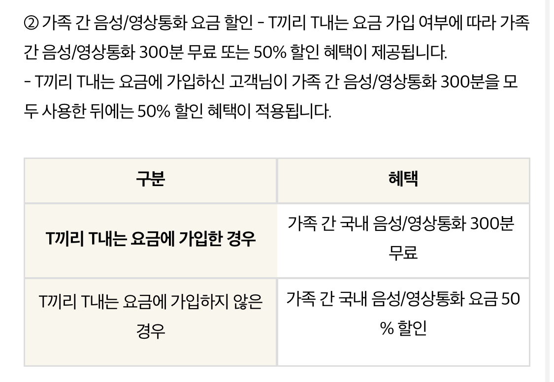 - 가족 간 음성/영상통화 요금 할인