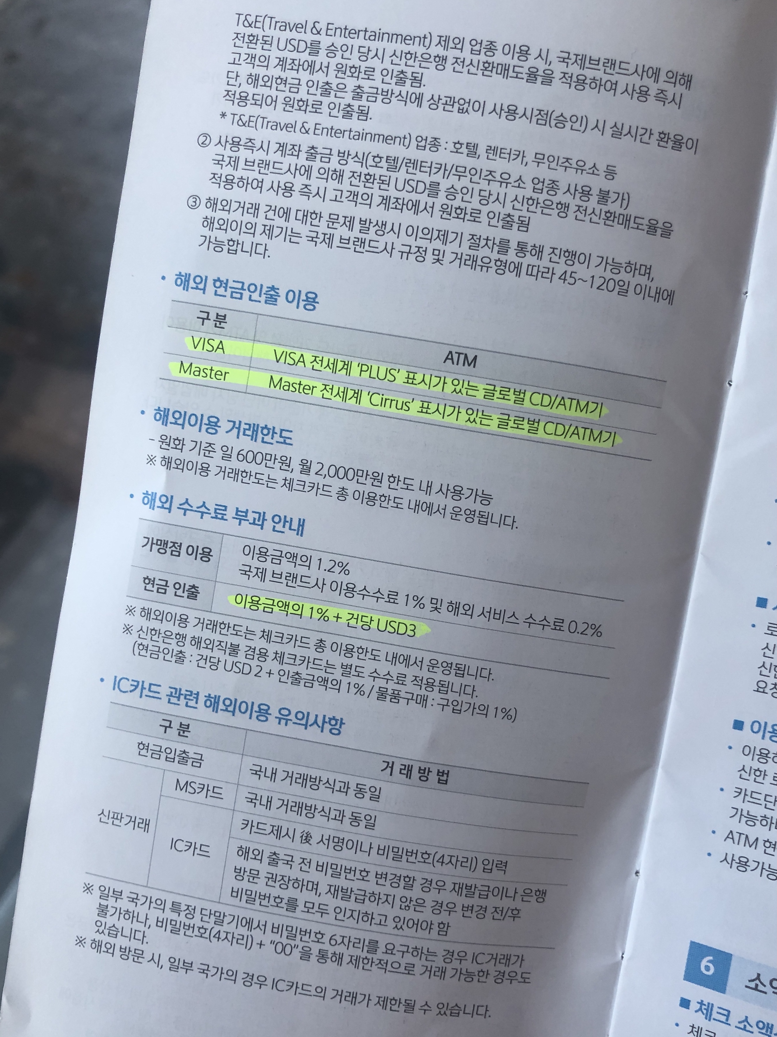 사실 가장 싸게 환전할 수 있는 방법이 뭐냐고 묻는다면 '환율이 좋을 때 달러를 모아두었다가 송금/인출하는 것'이다. 수수료가 제일 싼 방법은 신한은행 한정으로 이야기하면 '쏠'을 통해서 그때 그때 환전해두었다가, 지점에서 직접 수령하여 외화체인지업 통장에 넣어두는 것. 그리고 나서 외화체인업 카드를 발급 받아 해외에서 체크 카드처럼 별도 수수료 없이 쓰는 것이다. (송금의 경우, 7일 초과 시 별도 수수료가 없음, 외화 증권 계좌로의 송금도 가능. 반대로 7일 이내 송금하면 외화현찰 수수료가 추가로 발생함 / 원화로 재환전할 때 역시 7일 초과 필수)