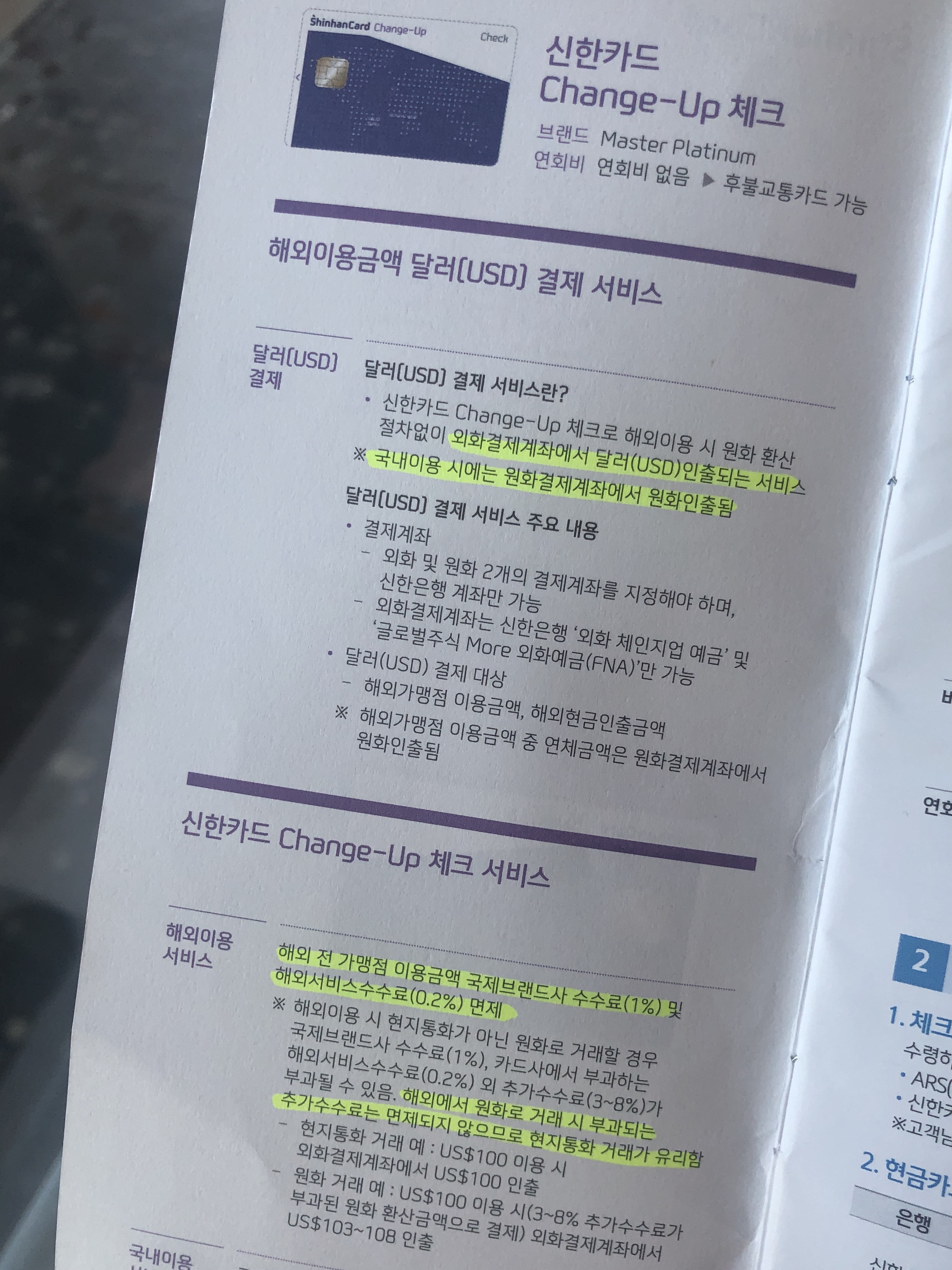 2) 신한은행 - 외화체인지업 통장, 외화체인지업 카드 발급