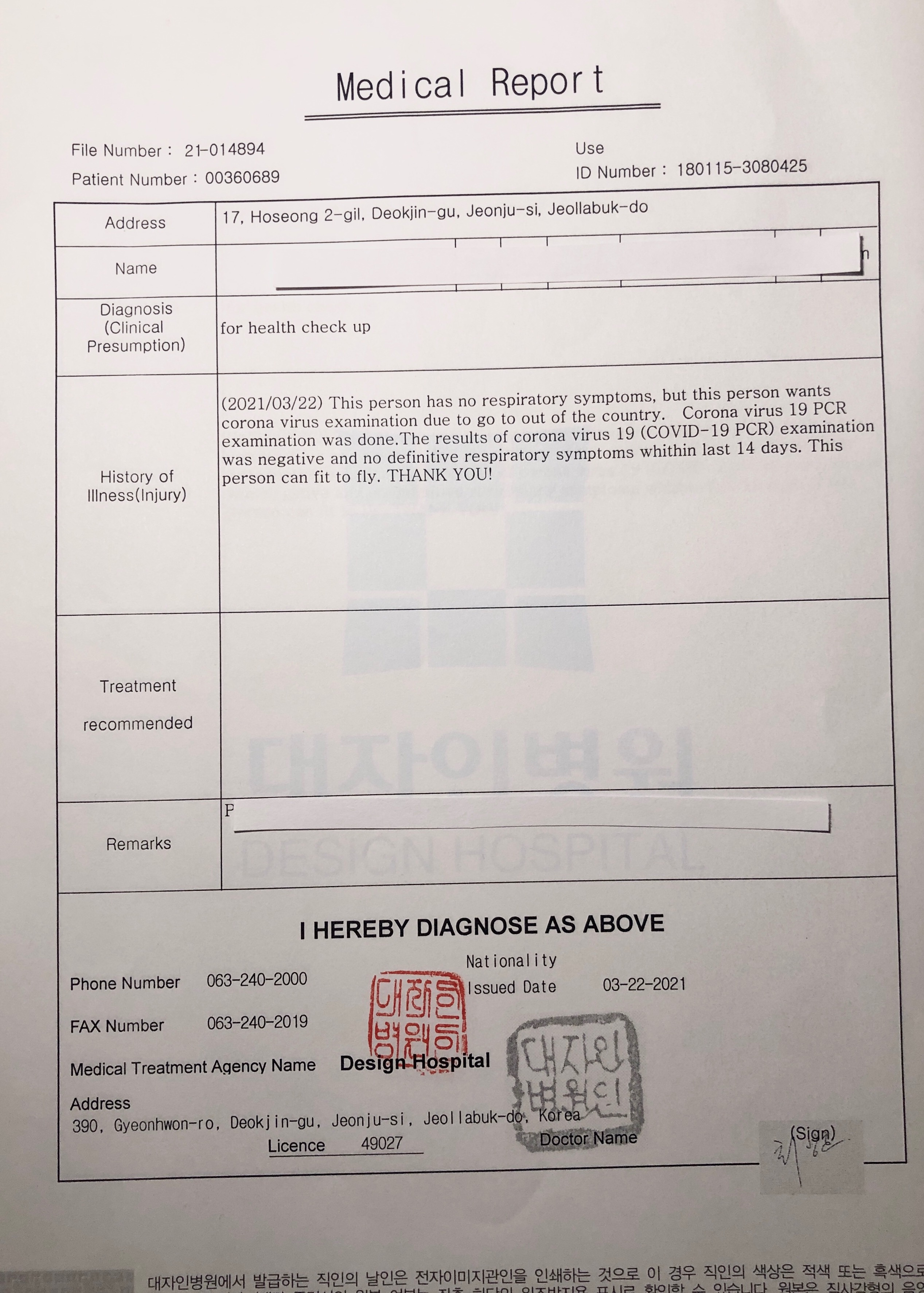 검사 결과는 당일 오후에 문자로 받았고, 영문 결과지는 다음날 오전에 본관에서 받을 수 있다고 하여, 오픈 시간에 맞추어 방문하였다. 예상치도 못하게 갑자기 전주에서 검사를 받게 된지라 검사지를 받으러 갈 때 필요했던 여권이 정작 수중에 없었는데, 병원 원무과로 문의해보니 (063-250-8700) 정보 확인차 필요한 것이기에 여권 스캔본으로도 가능하다고 하여 소지 후 방문 하였다! 영문 검사지 발급 비용은 1인당 2만원이다 ㅠㅠ